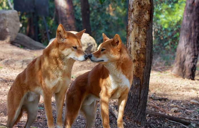 В далекой Австралии живут дикая собака Динго, ну как собака, что-то среднее между обычным псом и диким волком. Динго имеет рост средней собаки и рыжий (бурый) окрас. С первого взгляда его сложно отличить от обычной собаки, но осторожные повадки и отсутствие умения лаять выдают в ней дикого зверя.