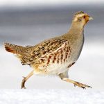 - Бородатая (даурская) куропатка. Ареал распространения — Юг Сибири, Алтай, Монголия, Северо-Восточный Тибет и Китай. Имеет небольшие размеры и вес 260-400 гр. Окрас буровато- серый. Чётко различим струйчатый рисунок на спине. Своё название птичка получила за жёсткие перья, расположенные на подбородке. Живёт на открытых пространствах, предпочитает склоны гор, долины рек и равнины. Летает крайне редко, никогда не гнездится на кустарниках и деревьях.